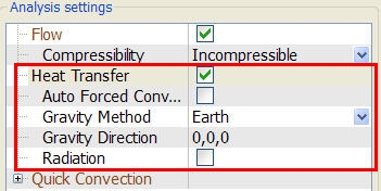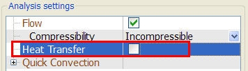 In some cases, checking an option will expand the menu. The Heat Transfer selection on the Solve dialog is an example: