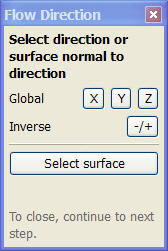 Use the pop-out to specify the required direction or other input. Several have a way to graphically select a direction by picking on the model. This is activated with the “Select Surface...” button. When finished, simply click anywhere in the property table to close the pop up.