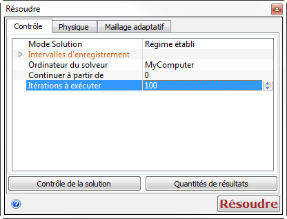 2. Dans l'onglet Contrôle, Itérations à exécuter = 100.