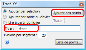 14. Dans la boîte de dialogue Tracé XY, saisissez « front » (avant) comme titre et cliquez sur Ajouter des points.