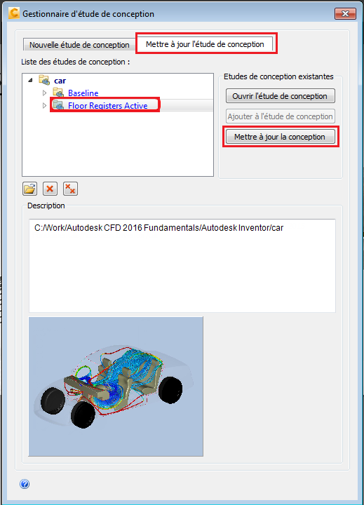 Dans le Gestionnaire d'étude de conception, cliquez sur l'onglet Mettre à jour l'étude de conception.