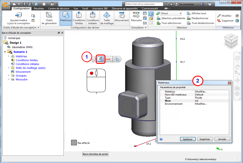 Cliquez sur la pièce avec le bouton droit de la souris (tâche Matériaux).