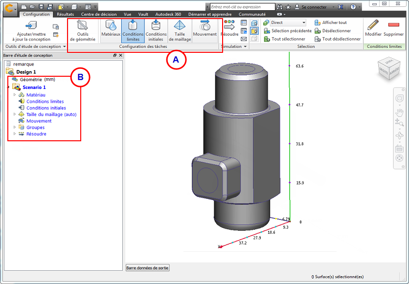 Pour commencer, sélectionnez la tâche dans l'onglet Configuration (A) ou dans la barre Etude de conception (B) :