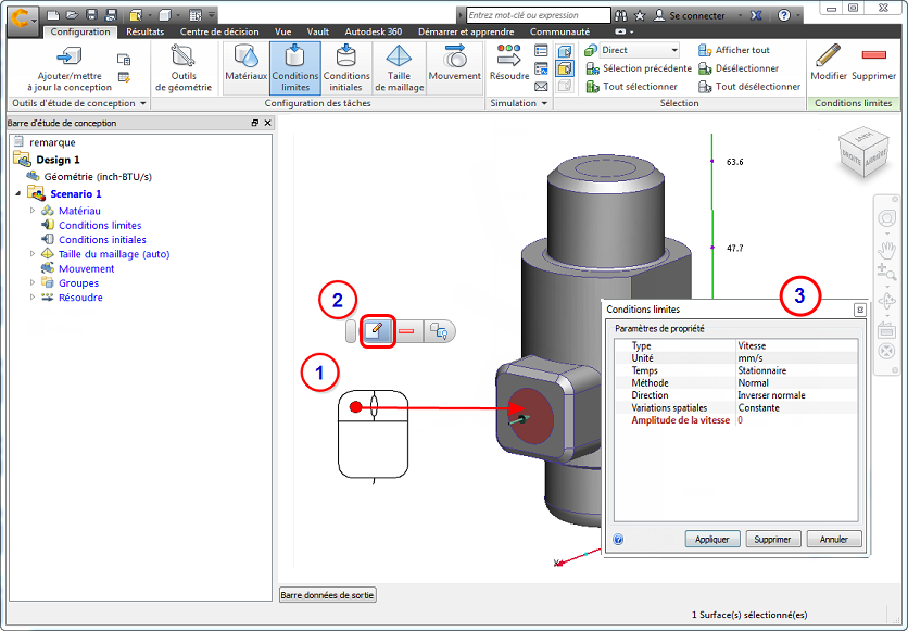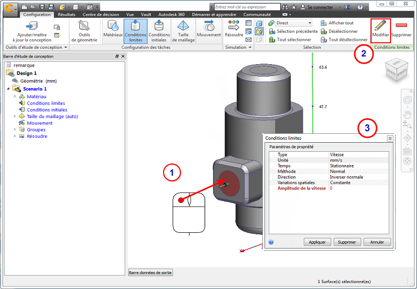 Cliquez sur la pièce avec le bouton droit de la souris (tâche Conditions limites).