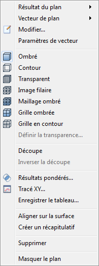 Cliquez avec le bouton droit sur le plan ou l'Iso-surface (pendant que la tâche Plans ou Iso-surfaces est active)