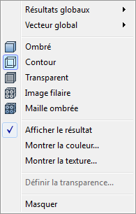 Pour toutes les tâches Résultats, utilisez les menus contextuels du bouton droit pour modifier l'apparence de l'objet de type modèle, pièce ou résultats.