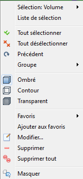 Pour chaque tâche de configuration, servez-vous des menus du bouton droit de la souris pour changer le type de sélection, sélectionner et désélectionner des éléments et ouvrir la boîte de dialogue d'édition rapide appropriée. Vous pouvez aussi accéder aux commandes spécifiques à la tâche en cours.
