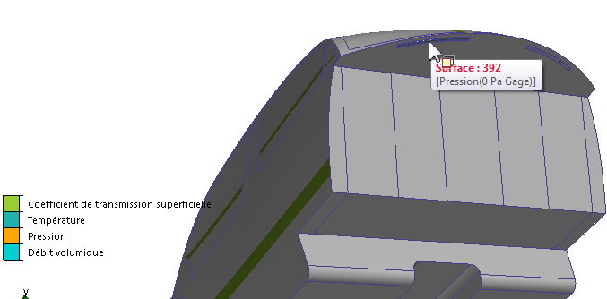 5. L'air froid pénètre dans l'habitacle par l'ouverture rectangulaire sous le pare-brise. Nous allons affecter une température et un débit à cette surface. Sélectionnez cette surface et cliquez sur le bouton Modifier de la barre d'outils contextuelle.