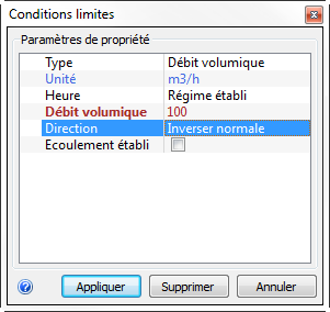 9. Type = Débit volumique , Unité = m3/h, Débit volumique = 100.