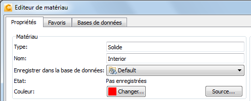 14. Dans l'Editeur de matériau, Nom = Intérieur, Enregistrer dans la base de données = Mes matériaux.