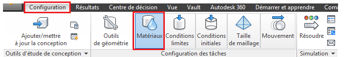 2. Cliquez sur Matériaux dans l'onglet Configuration :