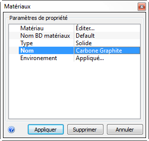 13. Type = Solide, Nom = Carbone Graphite. Cliquez sur Modifier sur la ligne Matériau.