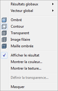 Le contrôle de l'apparence des pièces revêt une grande importance pour la visualisation des résultats. Autodesk® CFD propose les outils qui permettent de contrôler l'apparence des pièces afin de vous permettre de créer les images et les vues qui traduisent le mieux le comportement de la conception. Pour accéder à ces commandes, cliquez avec le bouton droit de la souris sur le modèle lorsque vous visualisez les résultats. Vous pouvez aussi cliquer avec le bouton droit sur les noms de pièces dans la branche Résultats > Matériau de la barre Etude de conception.