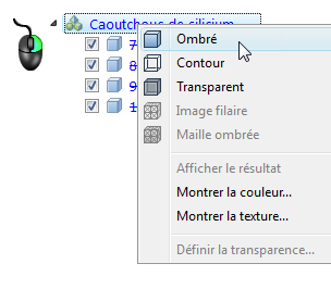 5. Cliquez sur la branche Caoutchouc de silicium avec le bouton droit de la souris et sélectionnez Montrer la couleur…