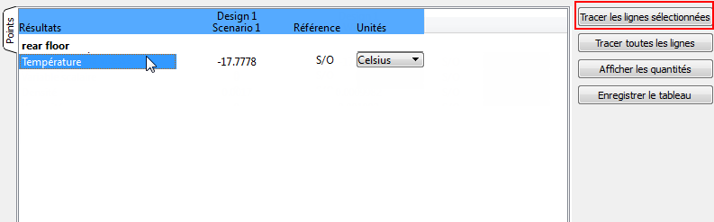 Cliquez sur la ligne Température, puis cliquez sur Tracer les lignes sélectionnées :