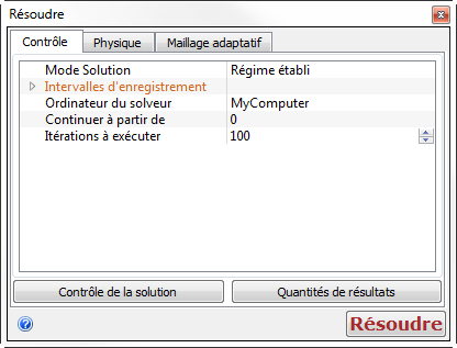 Définissez les conditions et les paramètres de solution sur l'onglet Physique.