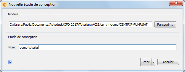 Dans la boîte de dialogue Gestionnaire de fichiers, accédez au dossier Users\Public\Public Documents\Autodesk\CFD 2017\Tutorials\<type de fichier>\centrif-pump.