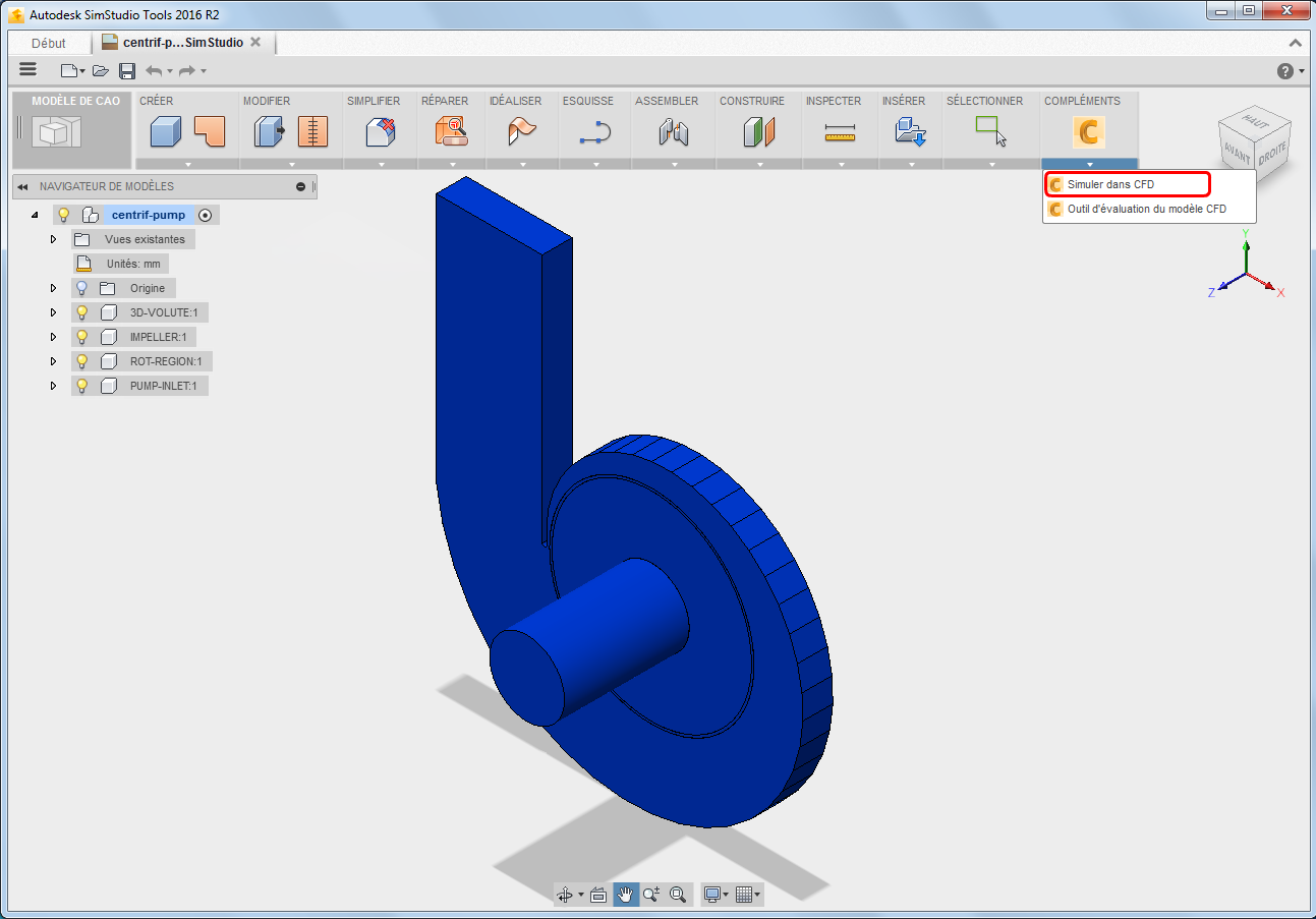Développez le menu Compléments, puis sélectionnez Simuler dans CFD.