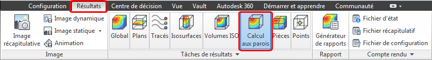 Pour évaluer les forces qui s'exercent sur les les surfaces de la paroi, cliquez sur Calculateur mural dans l'onglet Résultats :
