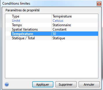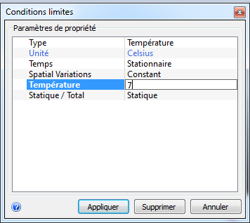 Ouvrez la boîte de dialogue d'édition rapide Conditions limites en appliquant l'UNE des méthodes suivantes :