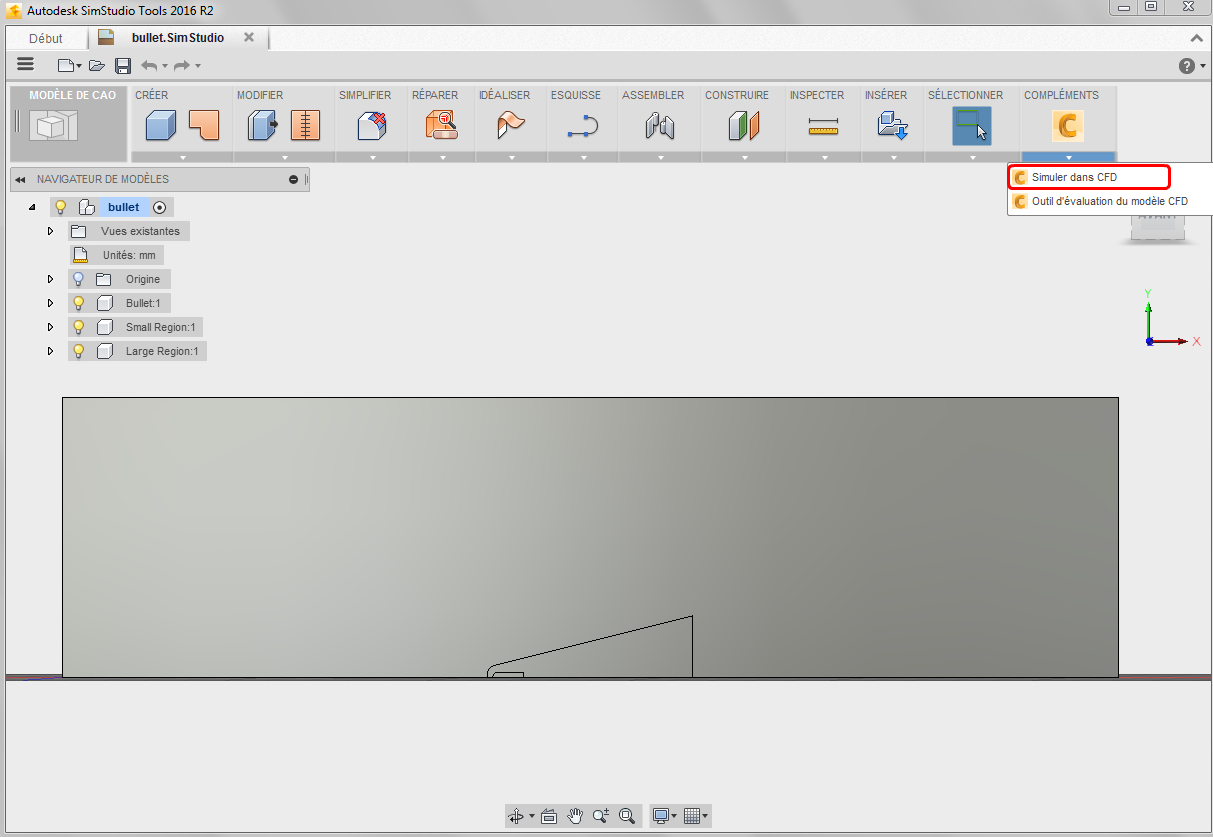 Développez le menu Compléments, puis sélectionnez Simuler dans CFD.