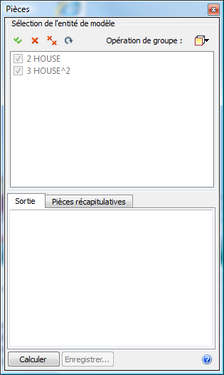 Cochez la case placée à côté de chaque pièce (dans la zone Sélection de l'entité de modèle).