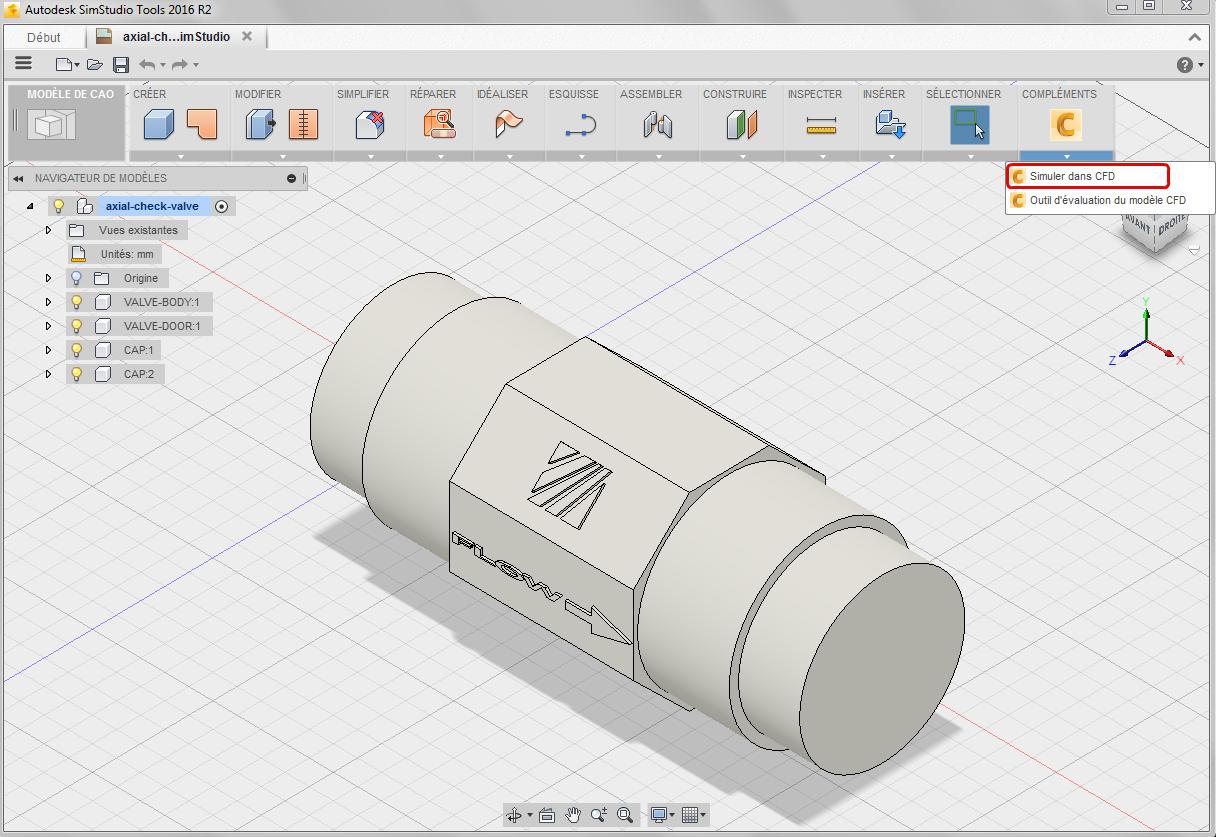 Développez le menu Compléments, puis sélectionnez Simuler dans CFD.