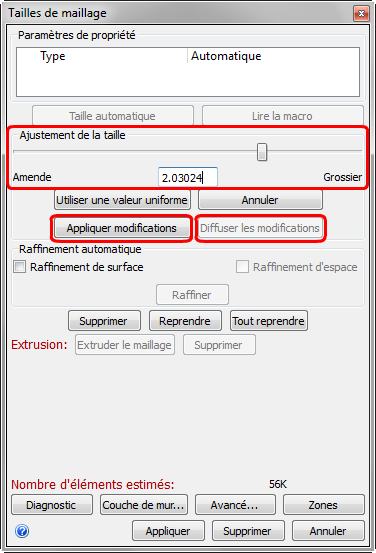 Pour modifier la définition de la taille de maillage, appliquez l'UNE des méthodes suivantes :