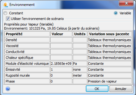Pour autoriser les variations de densité, cliquez sur Définir... sur la ligne Environnement. Dans la boîte de dialogue d'environnement du matériau, sélectionnez Variable et cliquez sur OK .