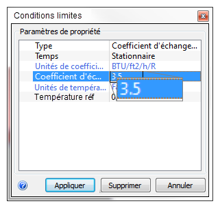12. Dans la rangée Coefficient de transmission superficielle, entrez 3.5.