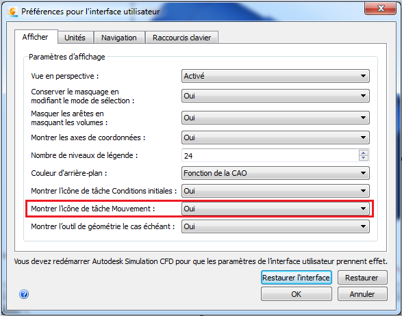 Quittez Autodesk® CFD. La modification prend effet lors du prochain démarrage d'Autodesk® CFD.