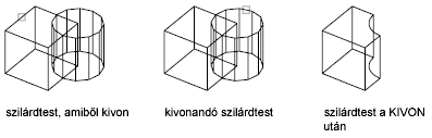 Új szilárdtestet hoz létre úgy, hogy két átfedésben lévő lemez vagy egy 3D szilárdtest esetén az egyiket kivonja a másikból.