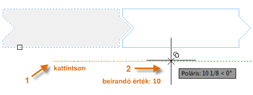 Ezután jobbra mozgatja a mutatót a poláris követés szögét használva, hogy megtartsa a vízszintes irányt, majd írja be a távolsághoz a 10 értéket. Nyomja le megint az Enter vagy a Szóköz billentyűt a parancs befejezéséhez.