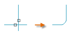 A LEKEREKÍT parancs (írja be a LEK karaktereket a Parancs ablakba) lekerekített sarkot hoz létre a két létrehozott objektumot érintő ív létrehozásával. Vegye figyelembe, hogy a lekerekítés ahhoz képest jön létre, hogy hol jelöli ki az objektumokat.