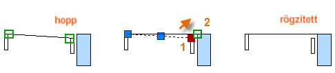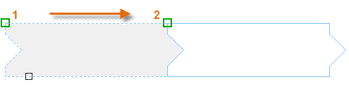 Néha számos objektumot kell kijelölnie. Ahelyett, hogy egyesével választaná ki az objektumokat, kijelölheti egy terület objektumait, ha egy üres helyre kattint (1), a mutatót jobbra vagy balra mozgatja, majd másodszor is kattint (2).