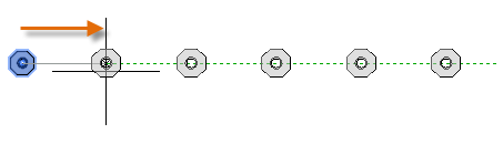 Ha több másolatot szeretne, kísérletezzen a MÁSOL parancs Kiosztás lehetőségével. Itt látható például mélyalapozási cölöpök egy hosszirányú elrendezése. Egy bázispontból meghatározza a másolatok számát és a középpont és középpont közötti távolságot.