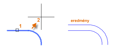 Jelölje ki az objektumot (1), adja meg az eltolás távolságát, majd kattintson annak jelzéséhez, hogy az eredeti melyik oldalára szeretné helyezni az eredményt (2). Itt láthatja egy vonallánc eltolásának példáját.