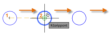 A kétpontos módszert ismétlődő sorozatként használhatja. Tegyük fel, hogy több másolatot szeretne létrehozni a körből ugyanazon a vízszintes távolságon. Indítsa el a MÁSOL parancsot, és jelölje ki a második kört az ábrázolt módon.