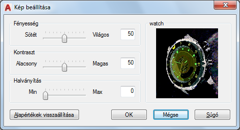 A kijelölt kép megjelenítését vezérli a fényesség, kontraszt és fakultság értékeinek beállításával.