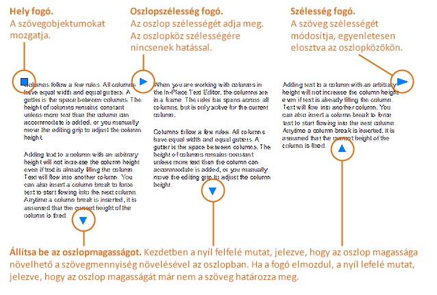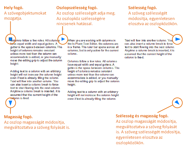 Az alábbi ábra a fogók használatát szemlélteti a Dinamikus oszlopok - Kézi magasság lehetőség választása esetén.