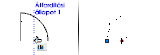 Az átfordítás műveletek a dinamikus blokkreferenciában szereplő kijelölt objektumok tükrözését eredményezik egy megadott tükrözési vonalra.