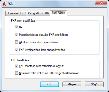Megjeleníti és módosítja az FKR-ikon beállításait és a nézetablakkal együtt mentett FKR-beállításokat.