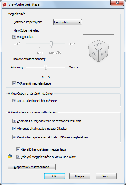 Jelenítse meg a ViewCube beállításai párbeszédpanelt.