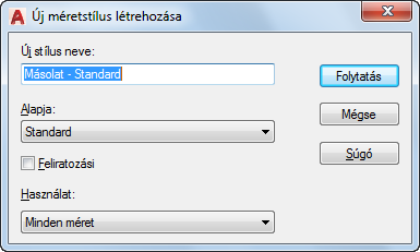 Megjeleníti az Új méretstílus párbeszédpanelt, amelyben megadhatja az új méretstílus tulajdonságait.