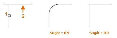 A lekerekítési sugár határozza meg a LEKEREKÍT parancs által létrehozott ív méretét, amely a két kijelölt objektumot vagy 2D vonalláncszakaszt kapcsolja össze. A módosításig a lekerekítési sugár az összes később létrehozott lekerekítésre érvényes.