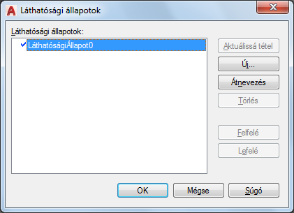 A kiválasztott láthatósági állapotot állítja be a Blokkszerkesztőben aktuálisan megjelenített láthatósági állapotként. A blokk rajzba történő beillesztésekor az alapértelmezett láthatósági állapot nem változik meg, ugyanígy megmarad a rajzba már korábban beillesztett és ott módosított blokkreferenciák láthatósági állapotbeállítása is.