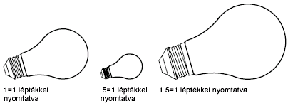 Az ábrán egy izzó látható három különböző méretarányban kinyomtatva.