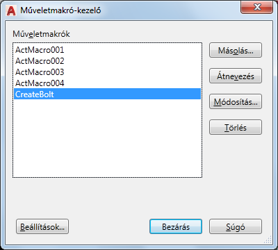 A Műveletmakró-kezelőben megjelennek a rögzített műveletmakró-fájlok (ACTM-fájlok).