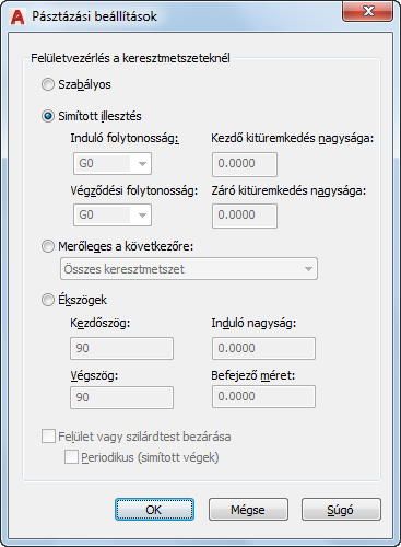 Olyan simított, zárt görbét hoz létre, amelynek vonala nem törik meg a görbe alakjának megváltoztatásakor. Ez a lehetőség csak akkor áll rendelkezésre, ha a pásztázás Szabályos vagy Simított illesztés, és a Felület vagy szilárdtest lezárása opciót választotta.
