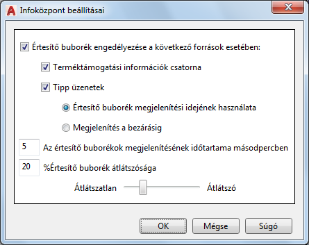 A buborékok megjelenítésének átlátszóságát vezérli 0 (átlátszatlan) és 80 (majdnem átlátszó) érték között.